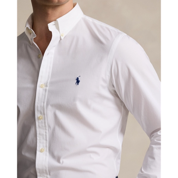 This shirt’s poplin fabric combines soft, breathable cotton with extra stretch for added comfort.